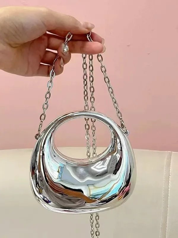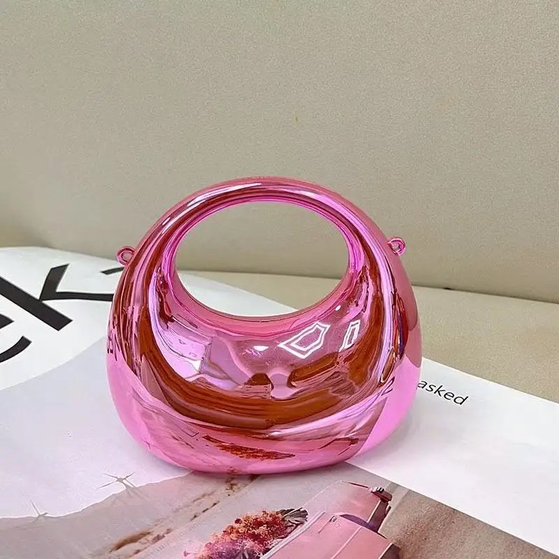 تألقي بإطلالة استثنائية مع حقيبة من الأكريليك شكل هلال، التي تجمع بين التصميم العصري واللمسة الفاخرة، مثالية للحفلات والسهرات الراقية.